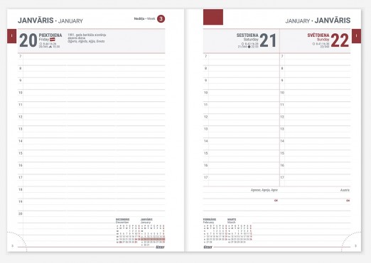 Papildinformācija: Polsterēti mākslīgās ādas vāki un krāsaini dizaina vāki, grāmatzīme, cietais sējums, perforēti noplēšami lapu stūrīši