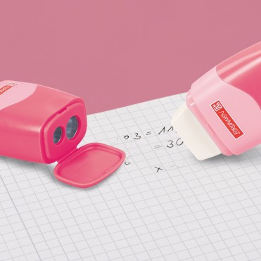 Zīmuļu asināmais un dzēšgumija 2-in-1 Colour, gaiši rozā