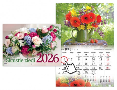 Apraksts: Kalendārā ir valsts svētku un atzīmējamās dienas, karogu dienas, vārda dienas, nedēļu numerācija, norādīts gadalaiku sākums, saullēkta un saulrieta laiki, mēness fāzes, zodiaka zīmju maiņas dienas.